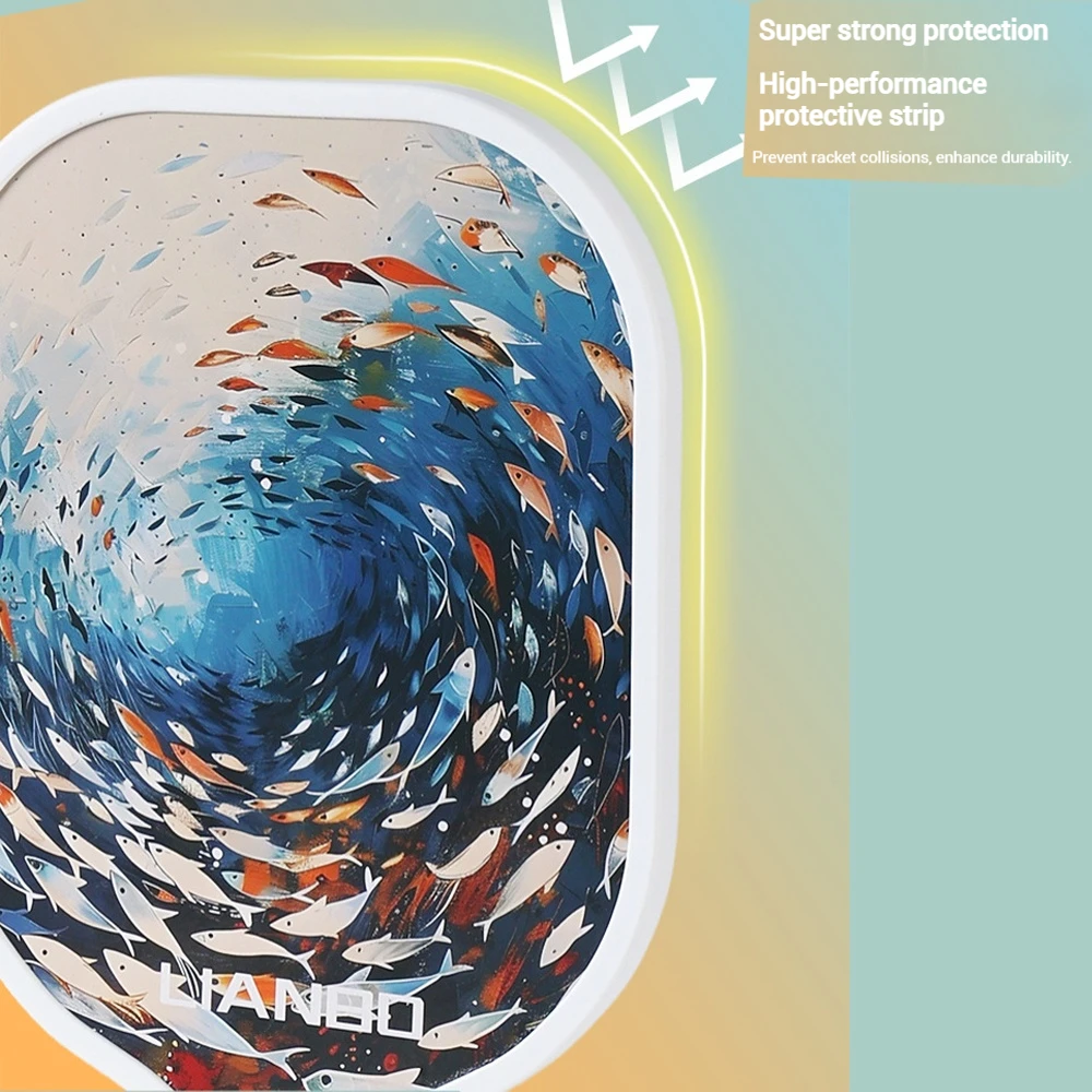 Low profile e-dge guard with high durability protects the paddle hitting surface and core against court damage, yet slim enough to reduces mishits.